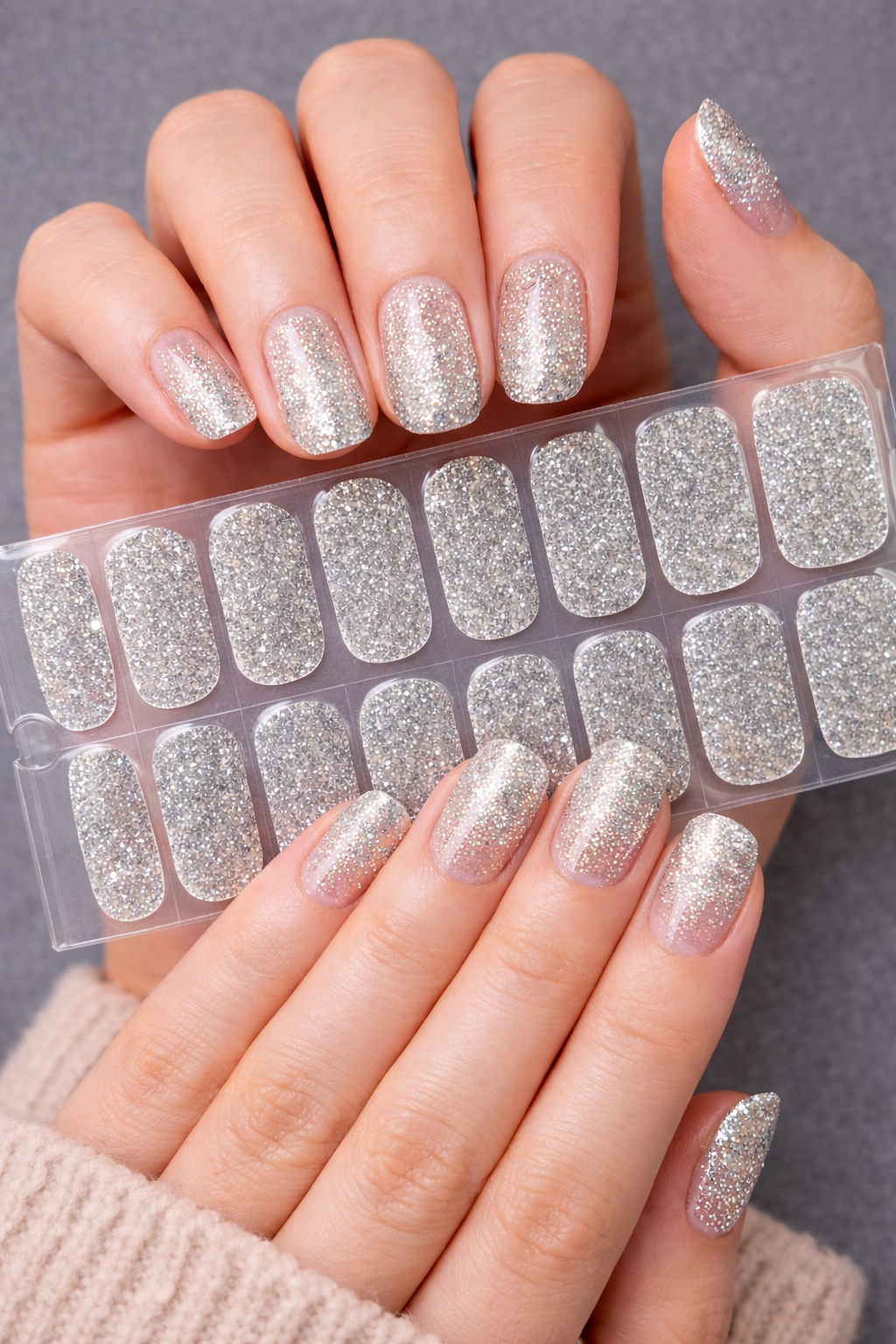 leicht transparente Nagelfolie in Silberglitzer